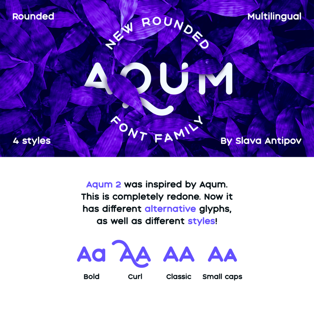 Aqum 2 is the new rounded font family. It consists of 4 styles, 1 of which you can get for free for commercial use.