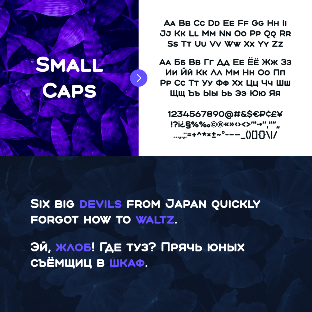 The application license is for those who use the font in mobile applications (iOS, Android, and other operating systems), including mobile device video games. There is no limit to the number of downloads or users of the application. The price depends only on the number of applications in which the font will be used. Full license text.