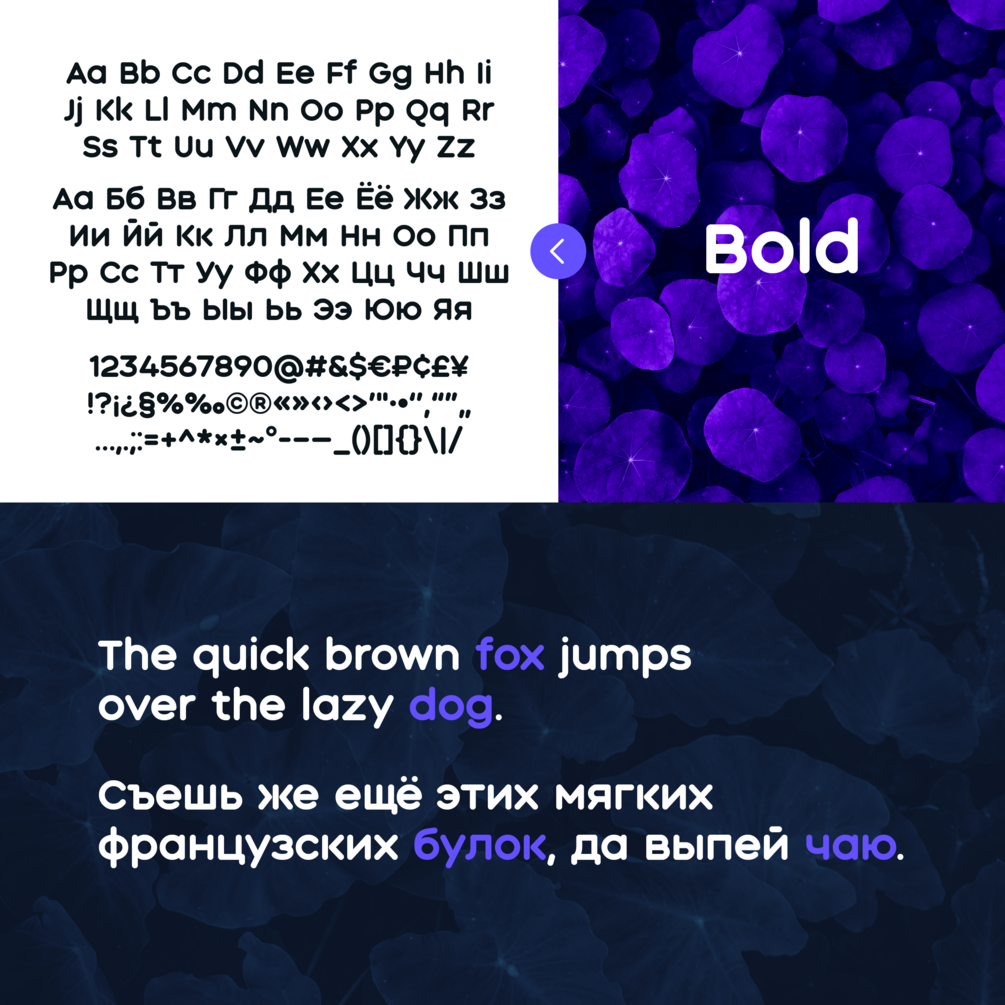 The application license is for those who use the font in mobile applications (iOS, Android, and other operating systems), including mobile device video games. There is no limit to the number of downloads or users of the application. The price depends only on the number of applications in which the font will be used. Full license text.