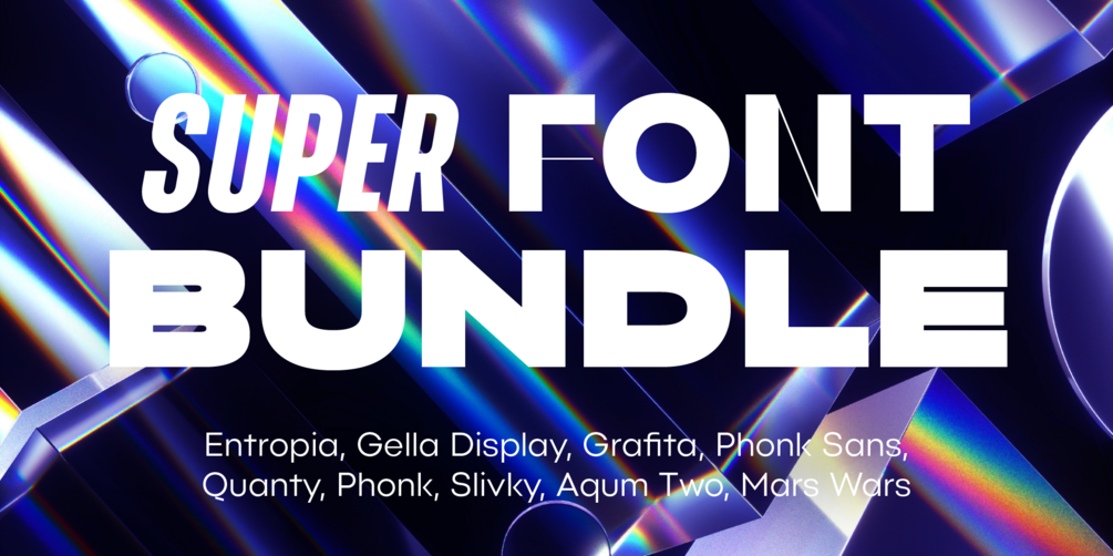 You will receive the complete Entropia, Gella Display, Grafita, Phonk Sans, Quanty, Phonk, Slivky, Aqum Two, Mars Wars font families.