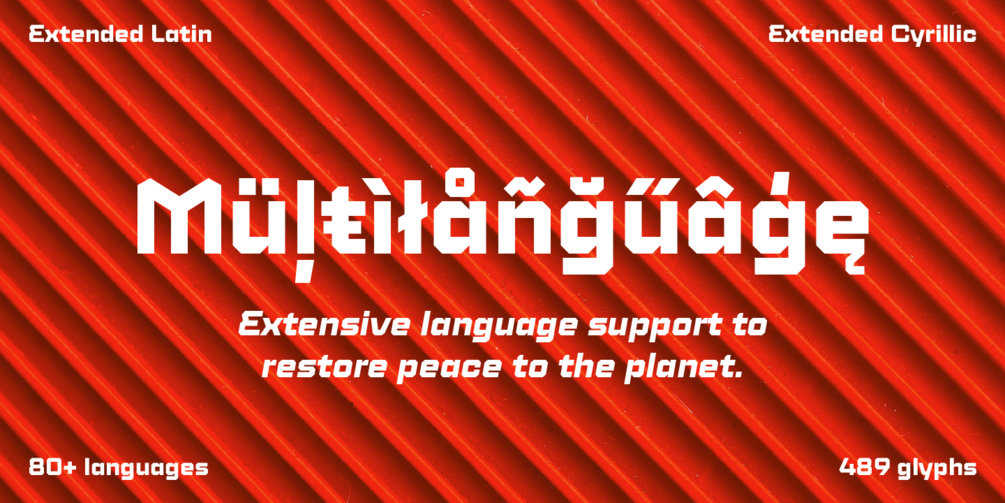 Mars Wars is a futuristic display font. It is inspired by cyberpunk and the digital era. Thanks to its original technological outlines, it is well suited for logos, packaging, posters and much more. Mars Wars has very wide language support. It has both extended Latin and extended Cyrillic. The font supports 80+ languages.