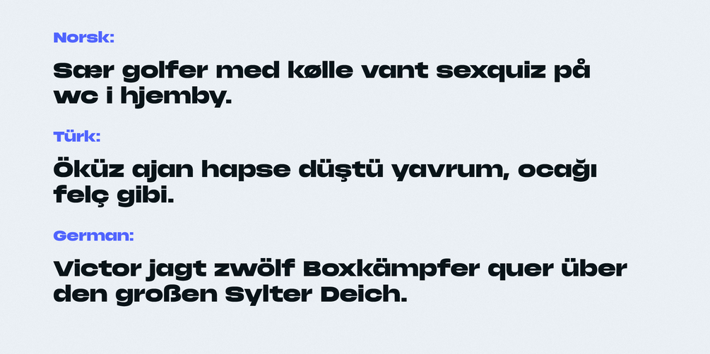 Phonk is a contemporary sans serif typeface with a bold, wide appearance and a distinctive character. Supporting multiple Latin and Cyrillic scripts, Phonk is versatile and ideal for headlines, logos, packaging, posters, advertising, and other applications requiring a strong and confident typographic presence.